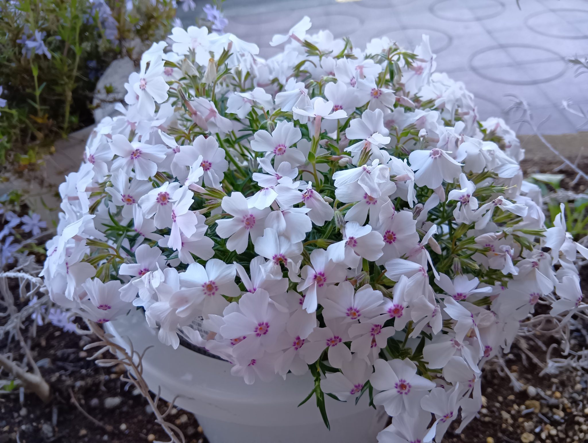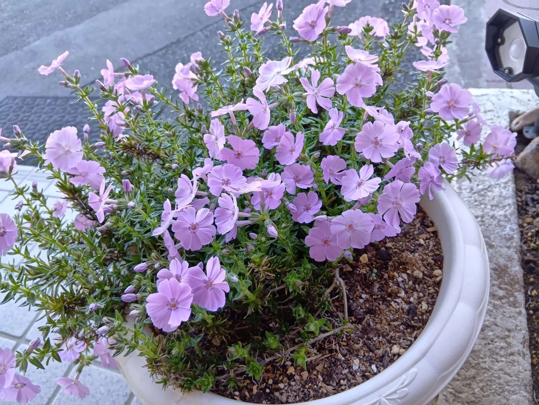 鉢に植えた芝桜がとてもきれいに咲いています。